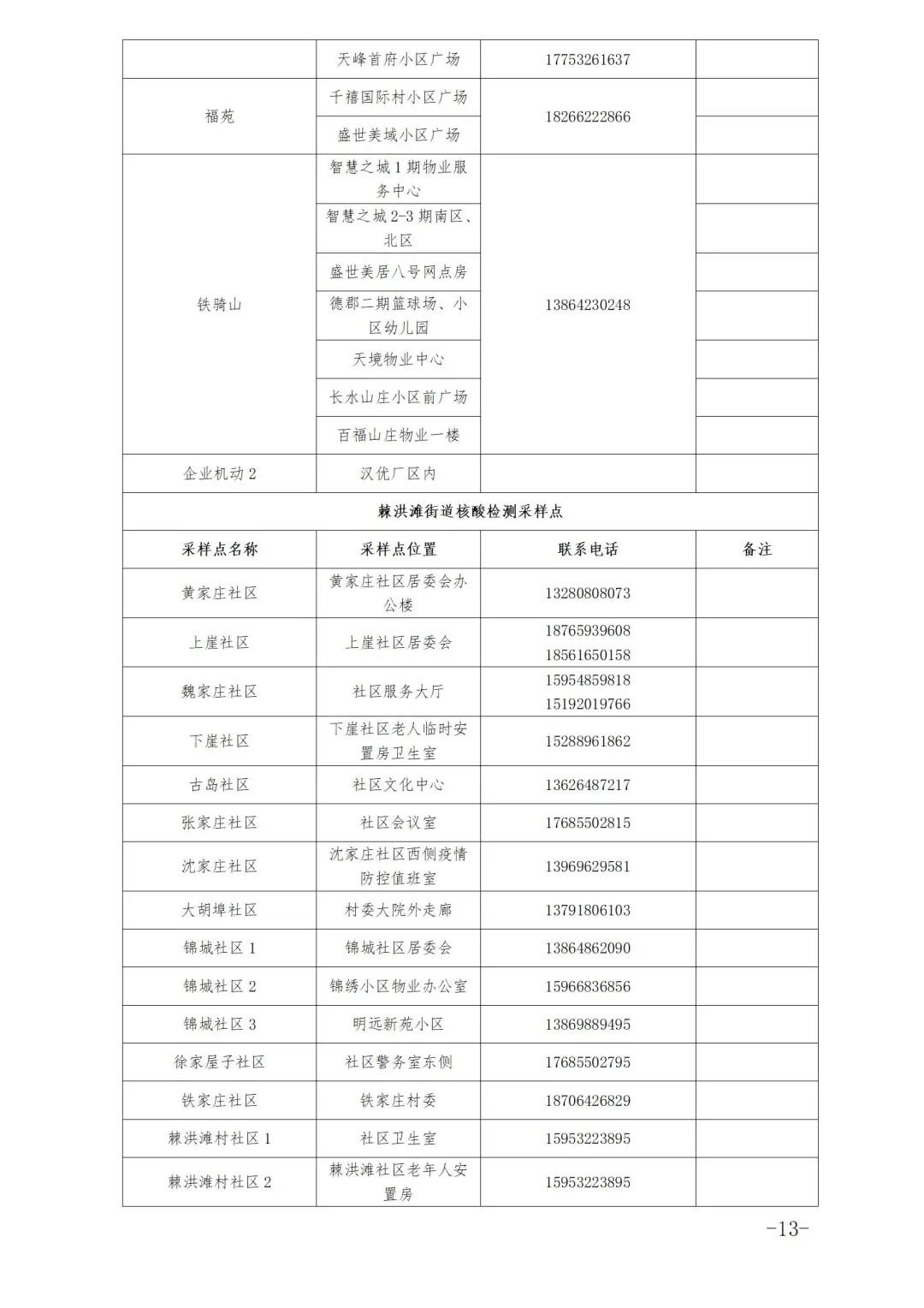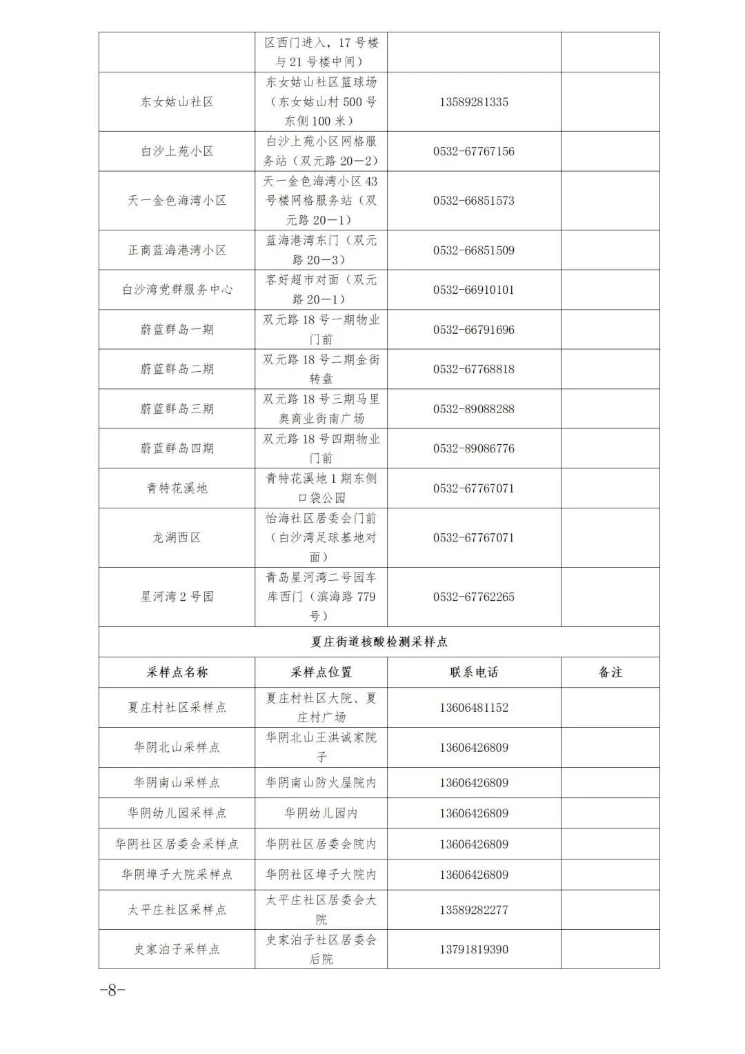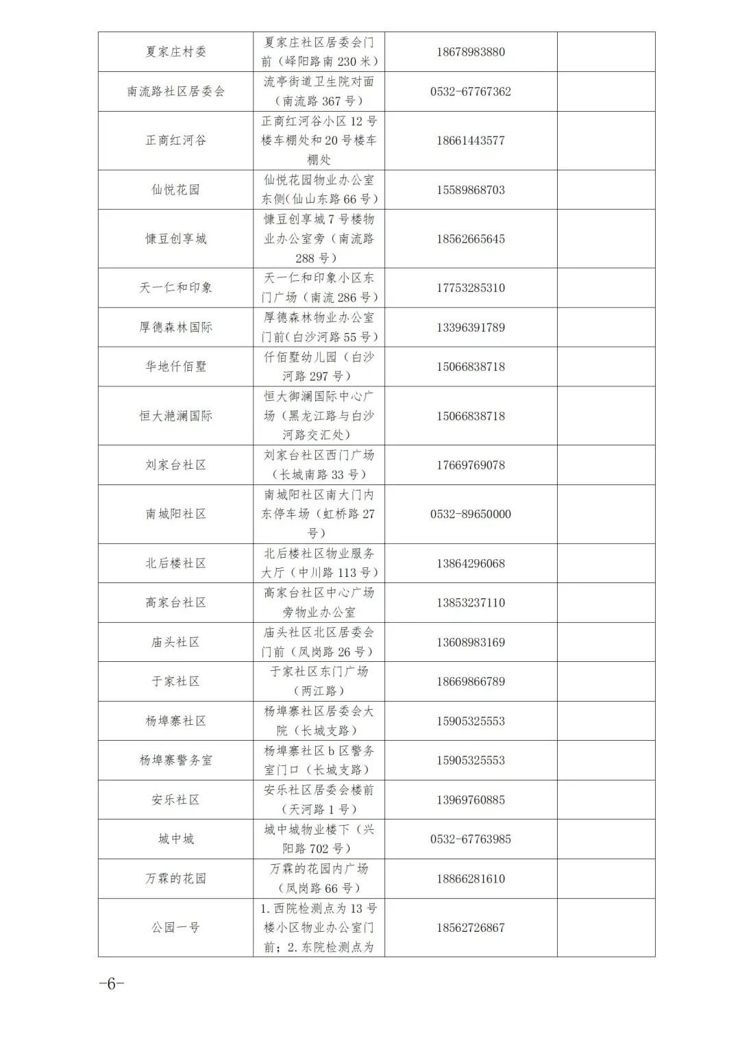 各街道、高新区防指办、高新便民服务中心就近设置采样点(采样点信息附后),请关注区及各街道、高新区防指办、高新便民服务中心发布的信息。