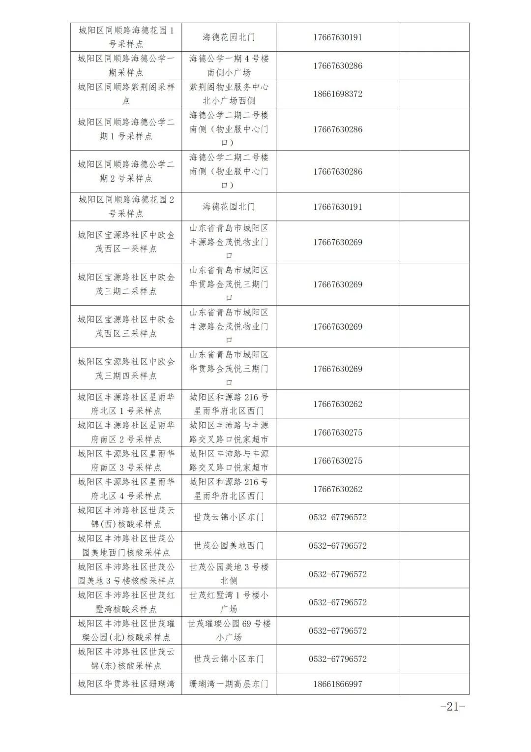 区党政机关事业单位、各类企业工作人员如居住地不在城阳区且未能参加城阳区全员核酸检测采样的,务必在居住地所在区及时完成核酸检测。