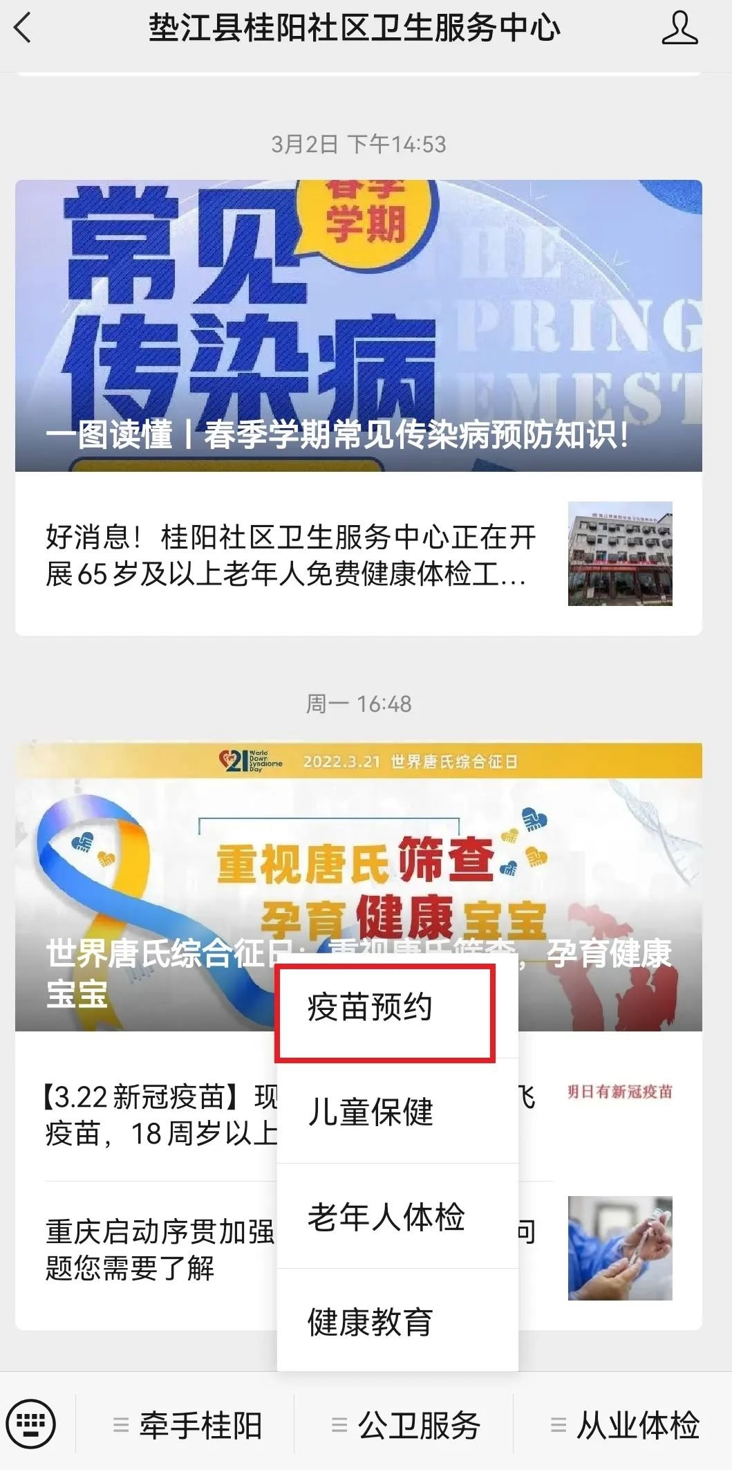 请大家提前注册好约苗账号信息,完成登陆,若此次预约不成功,请持续关注垫江县桂阳社区卫生服务中心微信公众号。