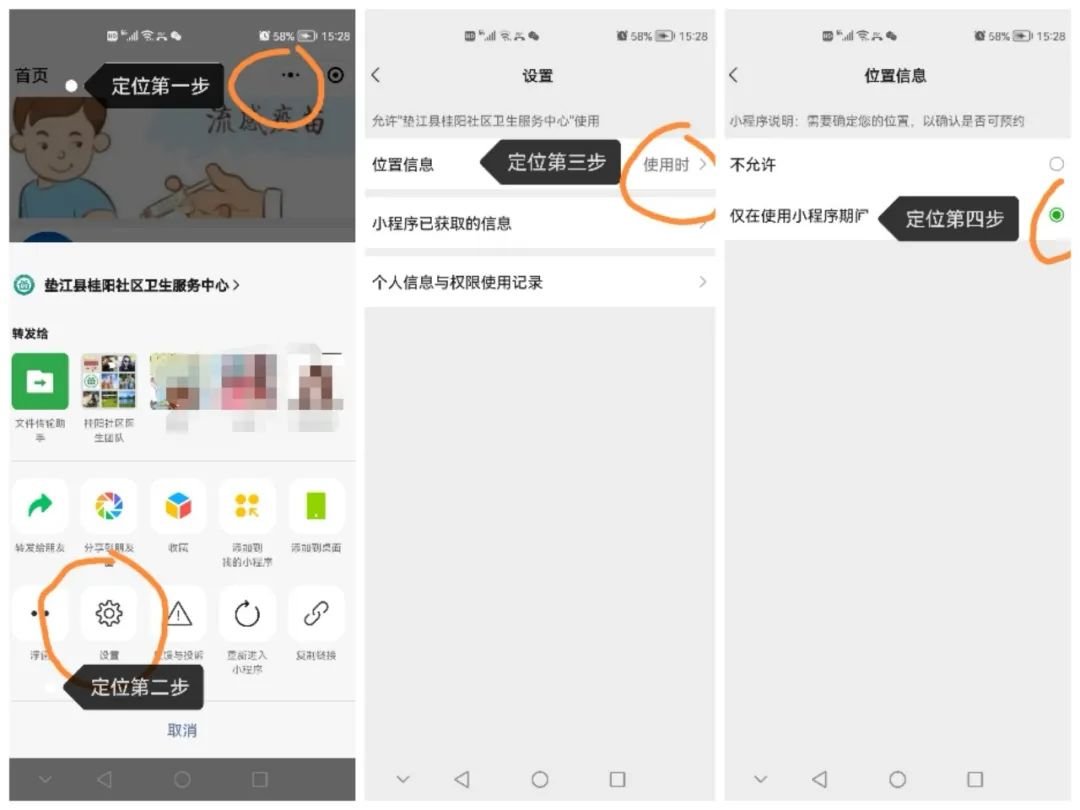 1.第一步请关注“垫江县桂阳社区卫生服务中心”微信公众号,并开启手机定位功能。