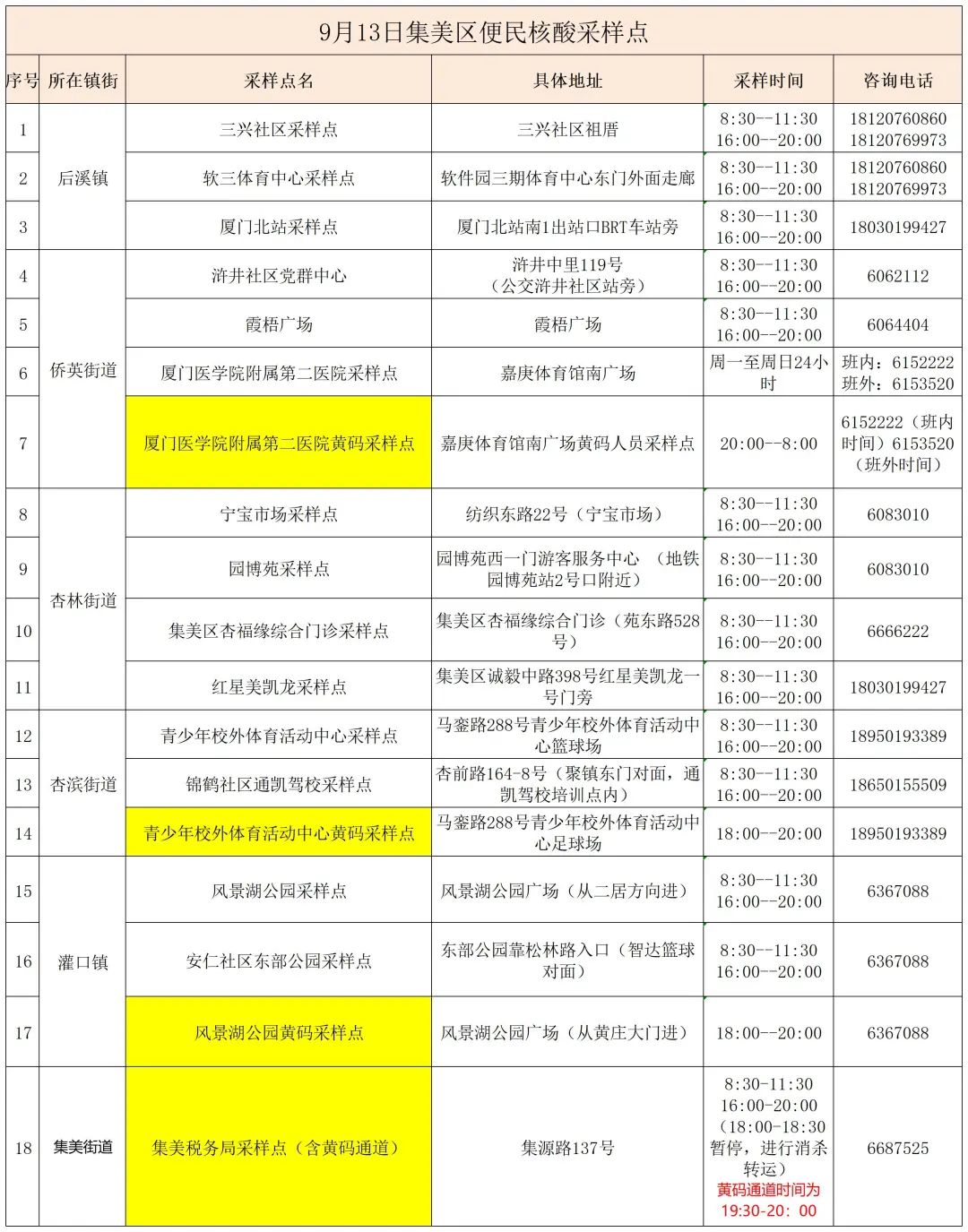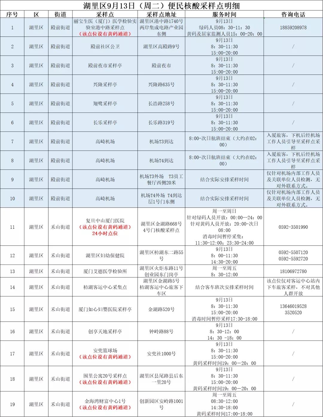2022年9月13日厦门免费核酸采样点汇总 2021厦门核酸检测点
