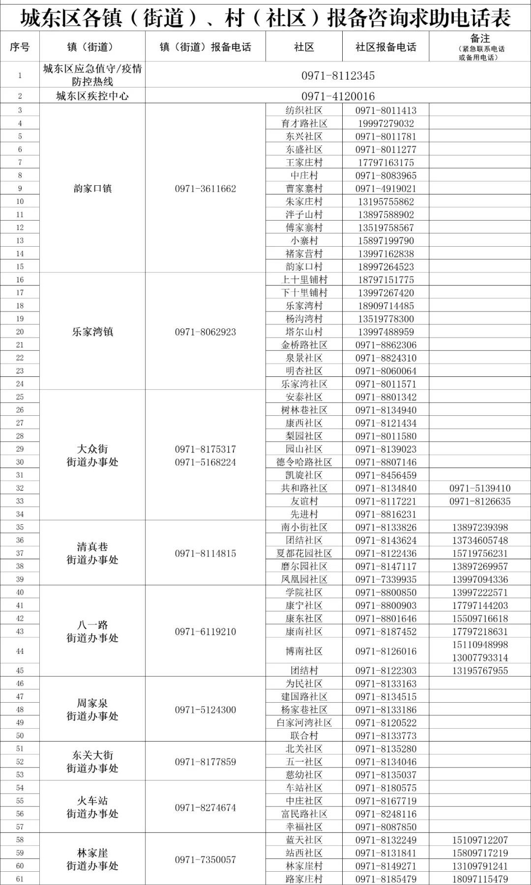 2022西宁城东区社区报备咨询电话 西宁市城东区社区电话