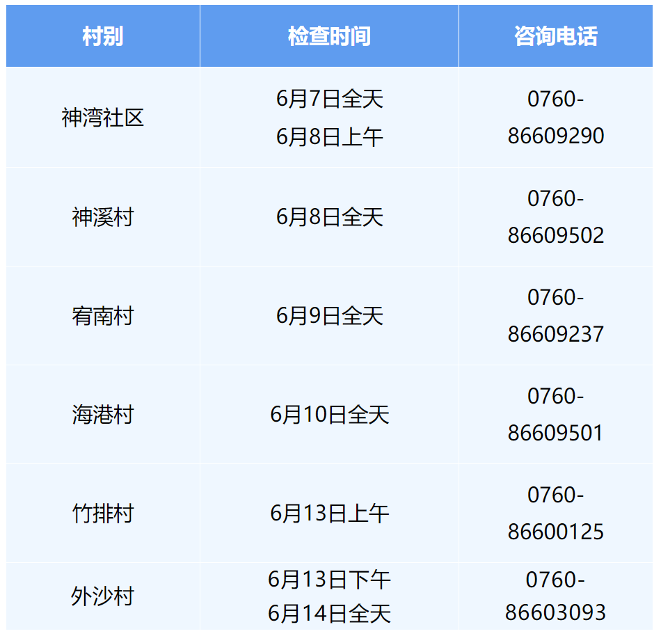(2)具体检查时间以各村(社区)工作人员通知的时间为准。