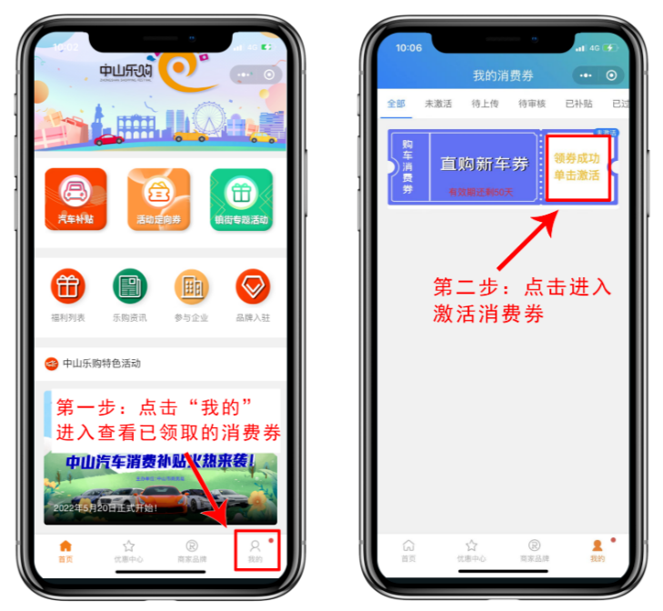 4、消费者需在消费券有效期内在“中山乐购”小程序中“选择汽车类型”并上传购车发票激活使用消费券。