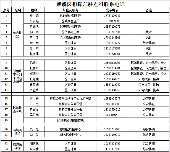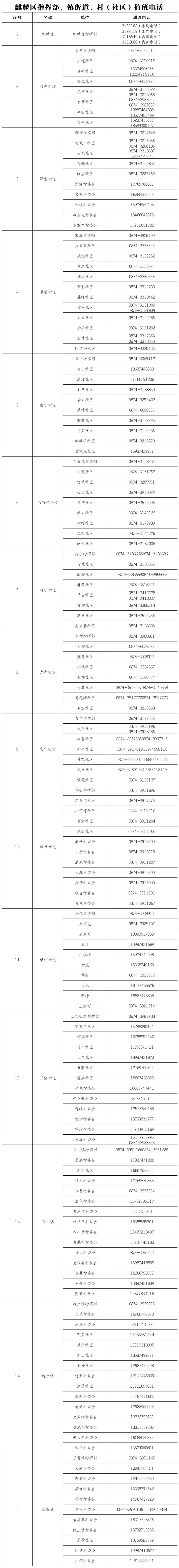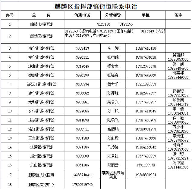 曲靖麒麟区疫情防控属地报备电话汇总