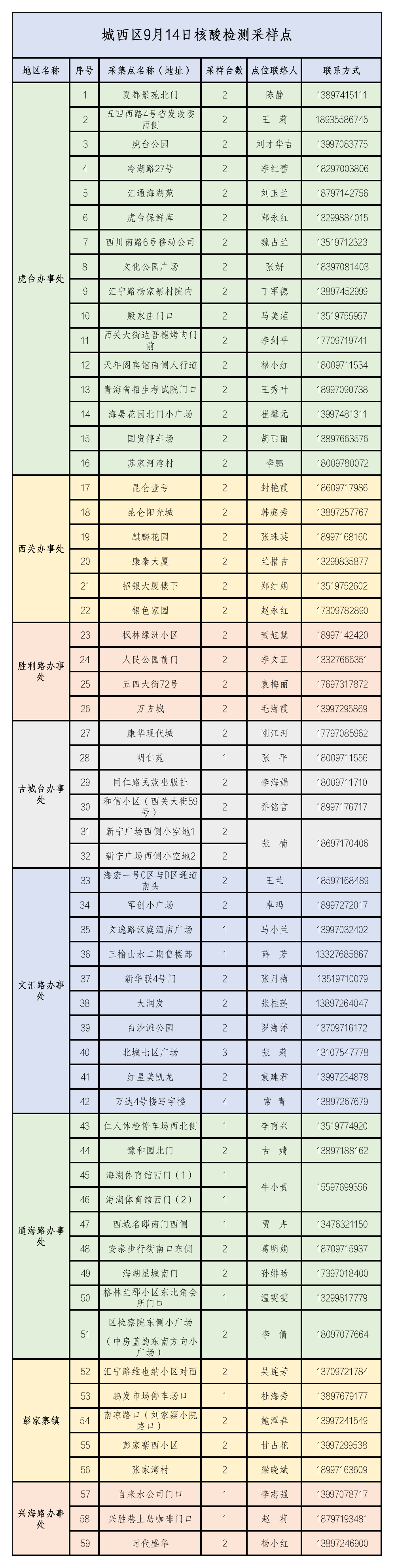 西宁城西区9月14日核酸检测通告