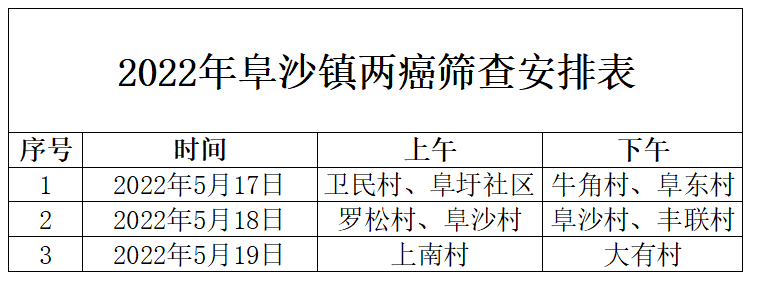 (一)两癌筛查时间:2022年5月17日至5月19日