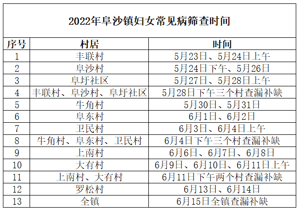 (二)妇女常见病筛查时间:2022年5月23日至6月15日