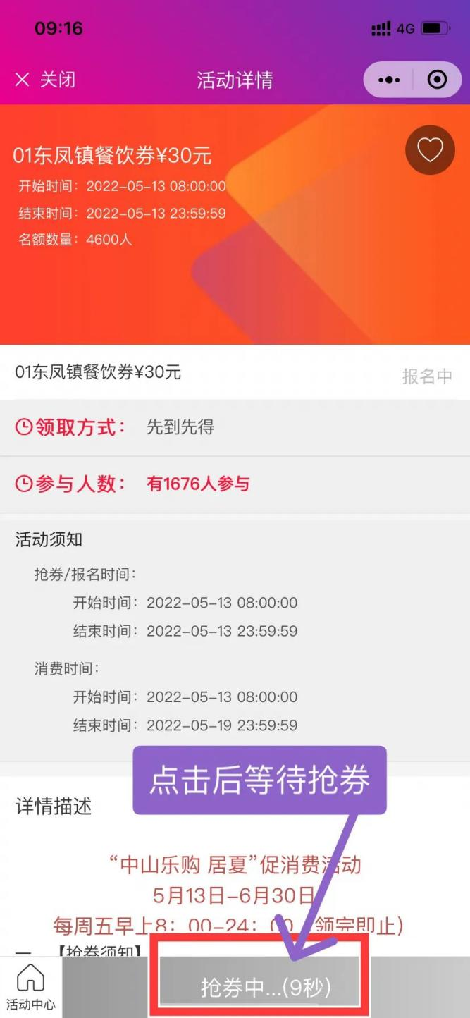 活动期间每周五早上8:00-24:00(领完即止),居民可通过微信公众号“今日东凤”菜单[抢消费券]进入,即抢即用。