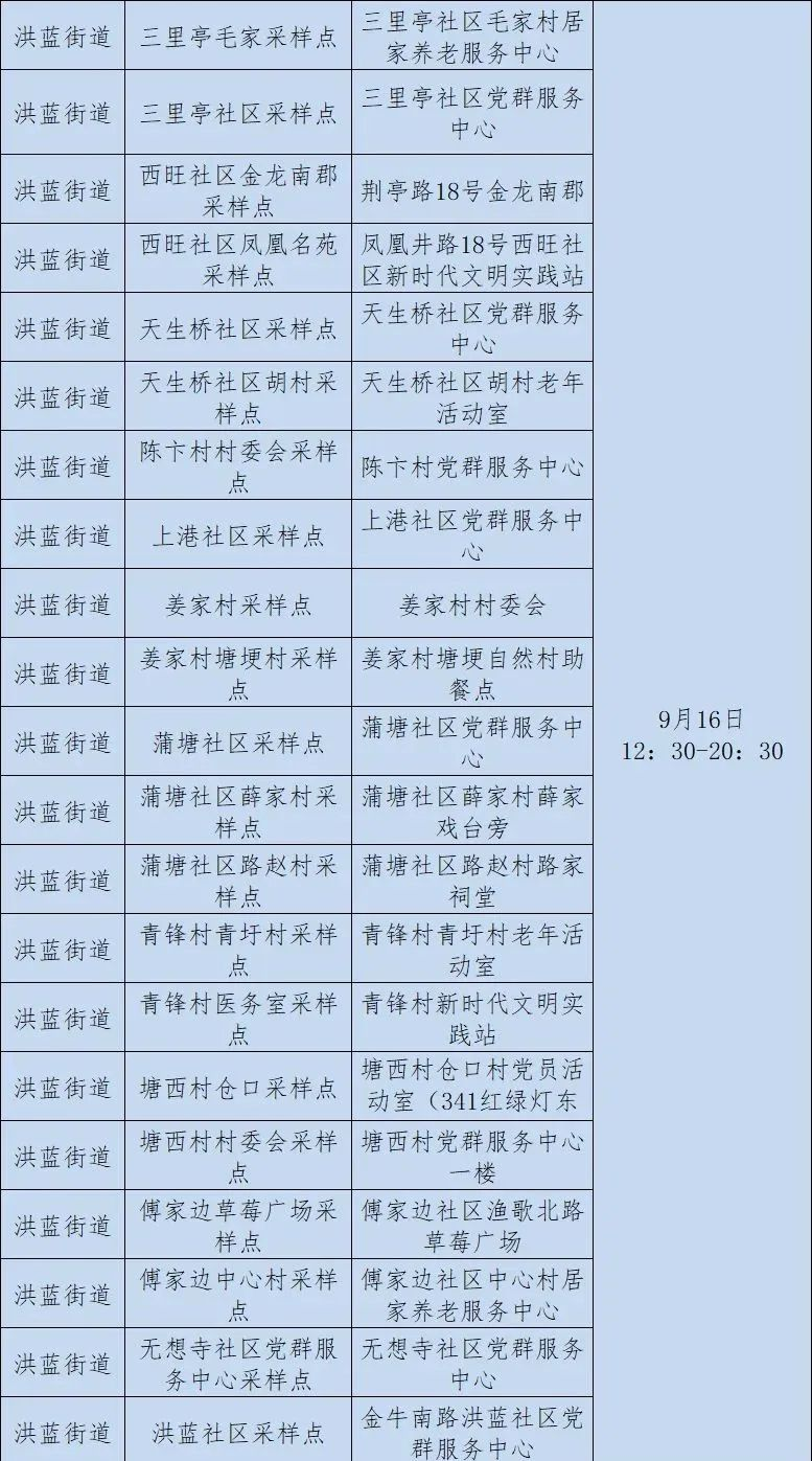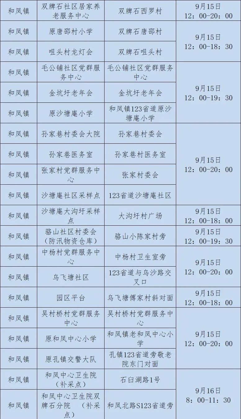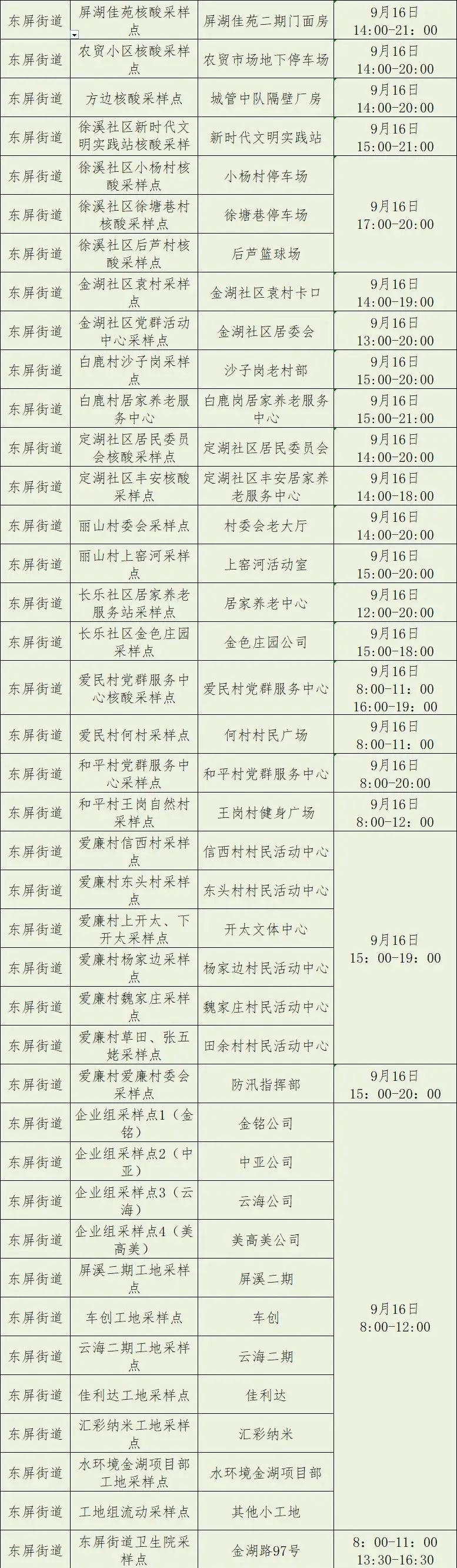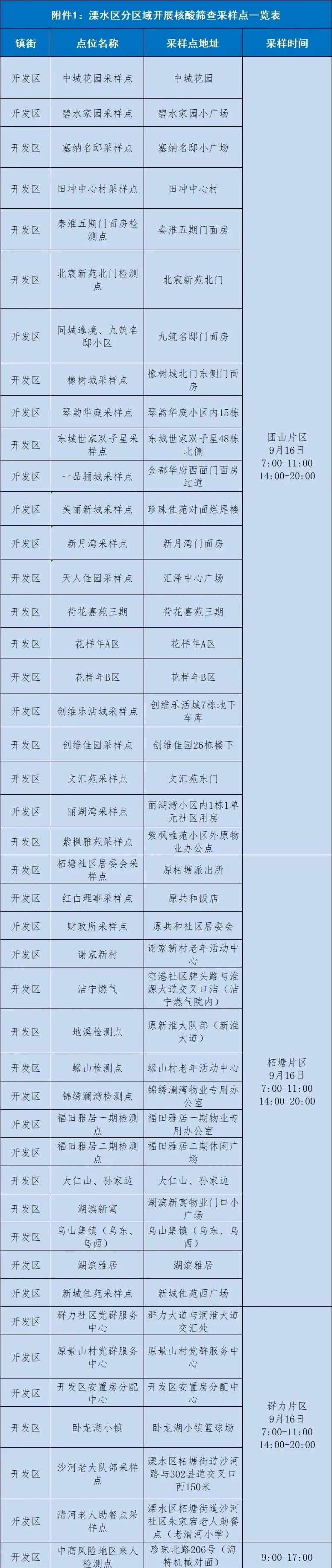 9月16日:开发区、洪蓝街道、东屏街道、白马镇、晶桥镇;