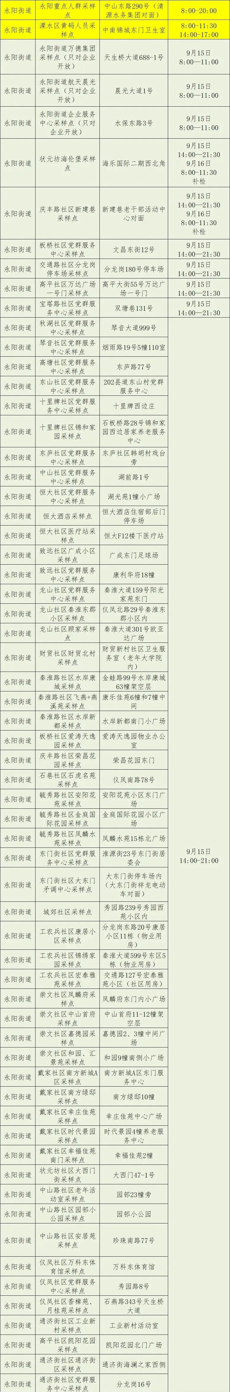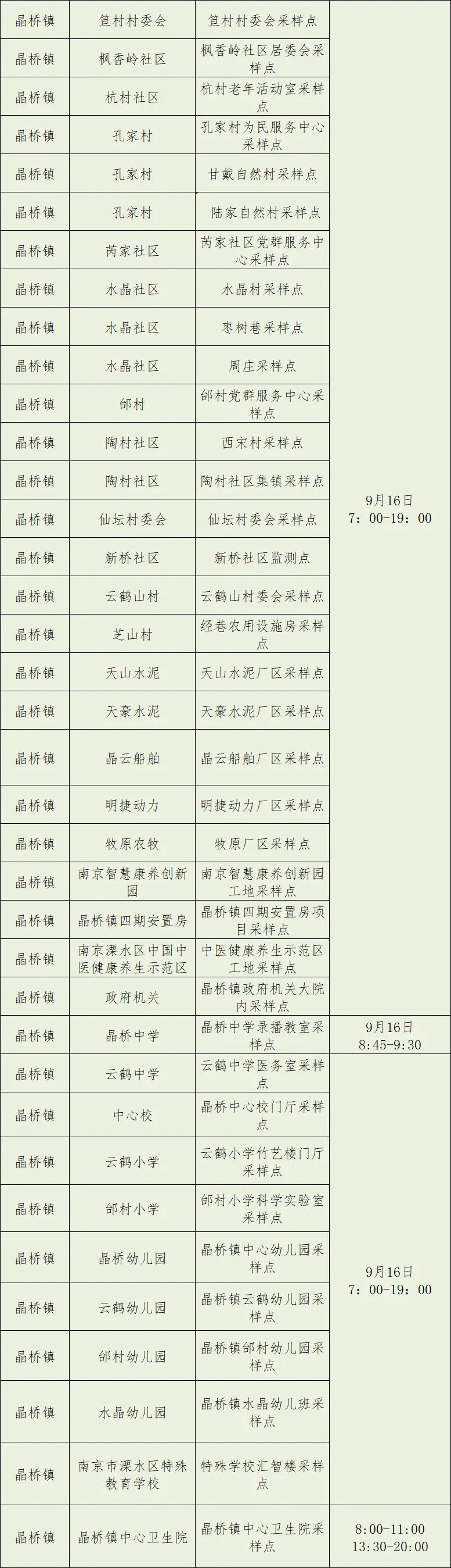 9月15日至16日南京市溧水区规模性核酸检测范围+采样点位