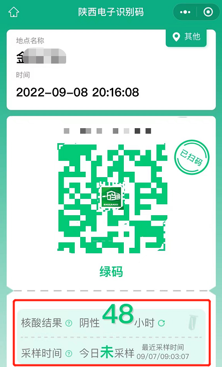 注:如果出入场所扫描场所码,会显示核酸报告是多少小时以内,今日是否采样等信息。