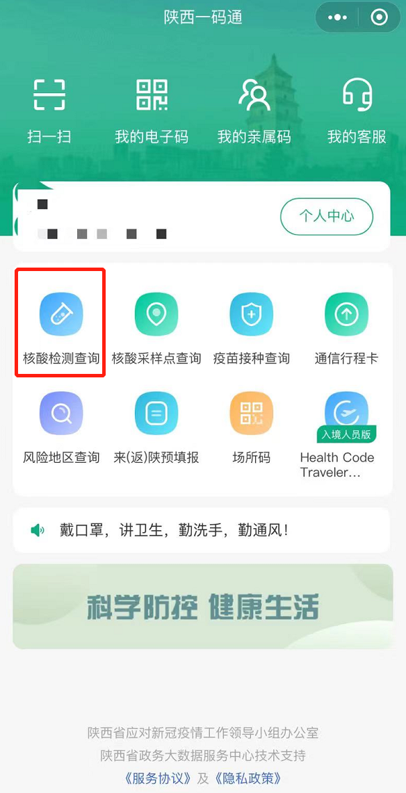步骤二:点击核酸结果查询
