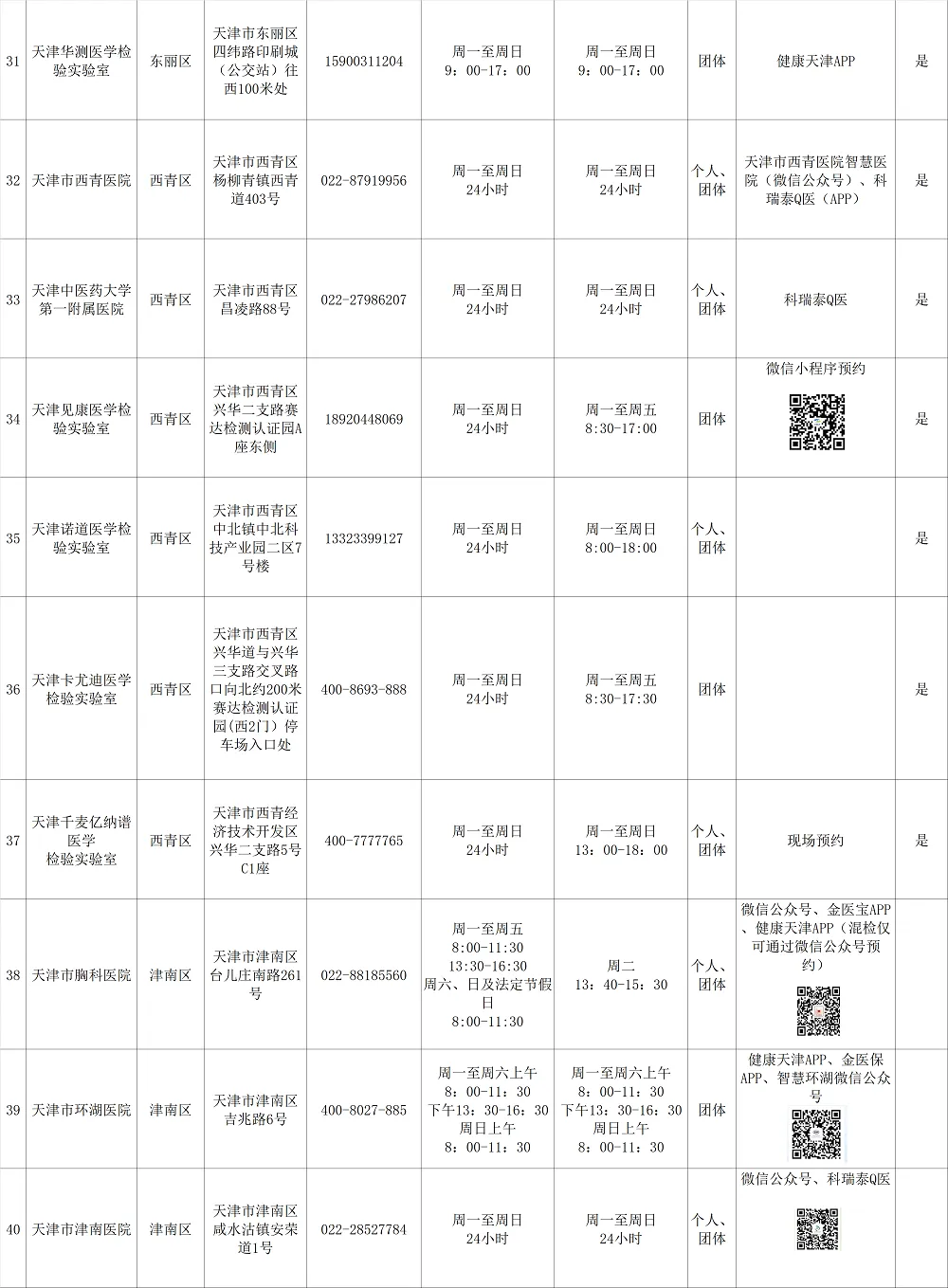 天津核酸检测点位图
