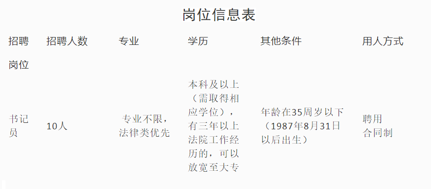 因工作需要,南京市建邺区人民法院面向社会公开招聘合同制书记员10名,现就公开招聘有关事项公告如下。