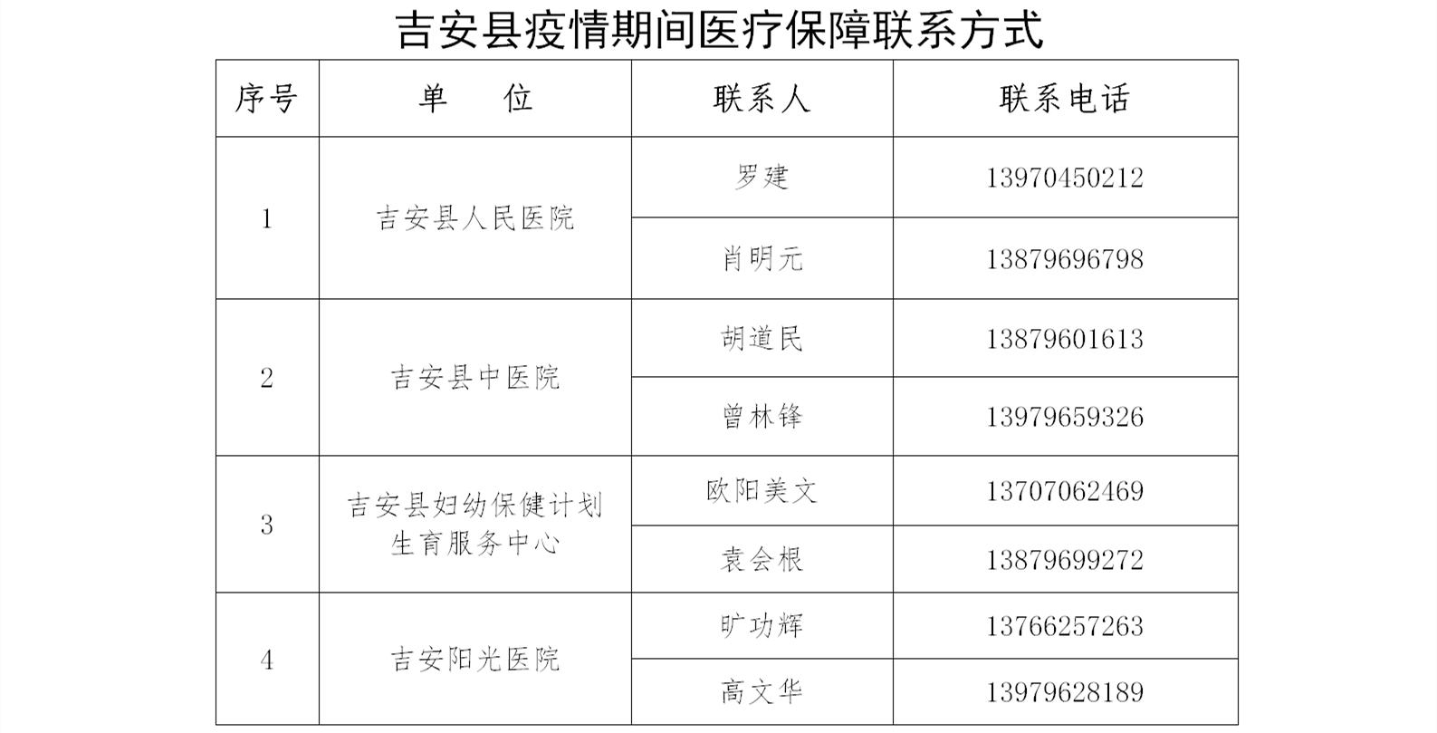 附件1:吉安县疫情期间医疗保障联系方式