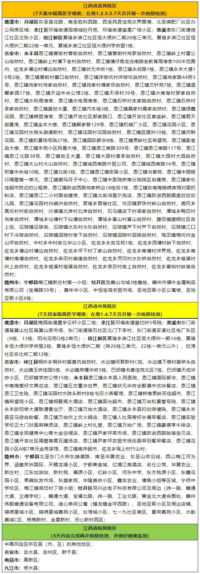 一、江西省省内流动人员健康管理措施清单(更新至2022年9月14日15时)