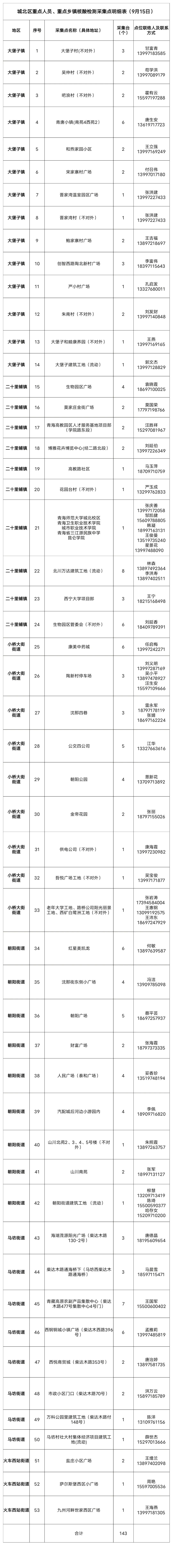 西宁城北区9月15日重点人群核酸检测通告