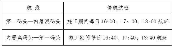 厦门轮渡第一码头往返内厝澳码头市民航线部分航班将暂停运营