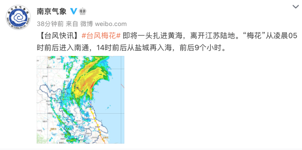 2022南京9月15日14时02分解除台风蓝色预警信号
