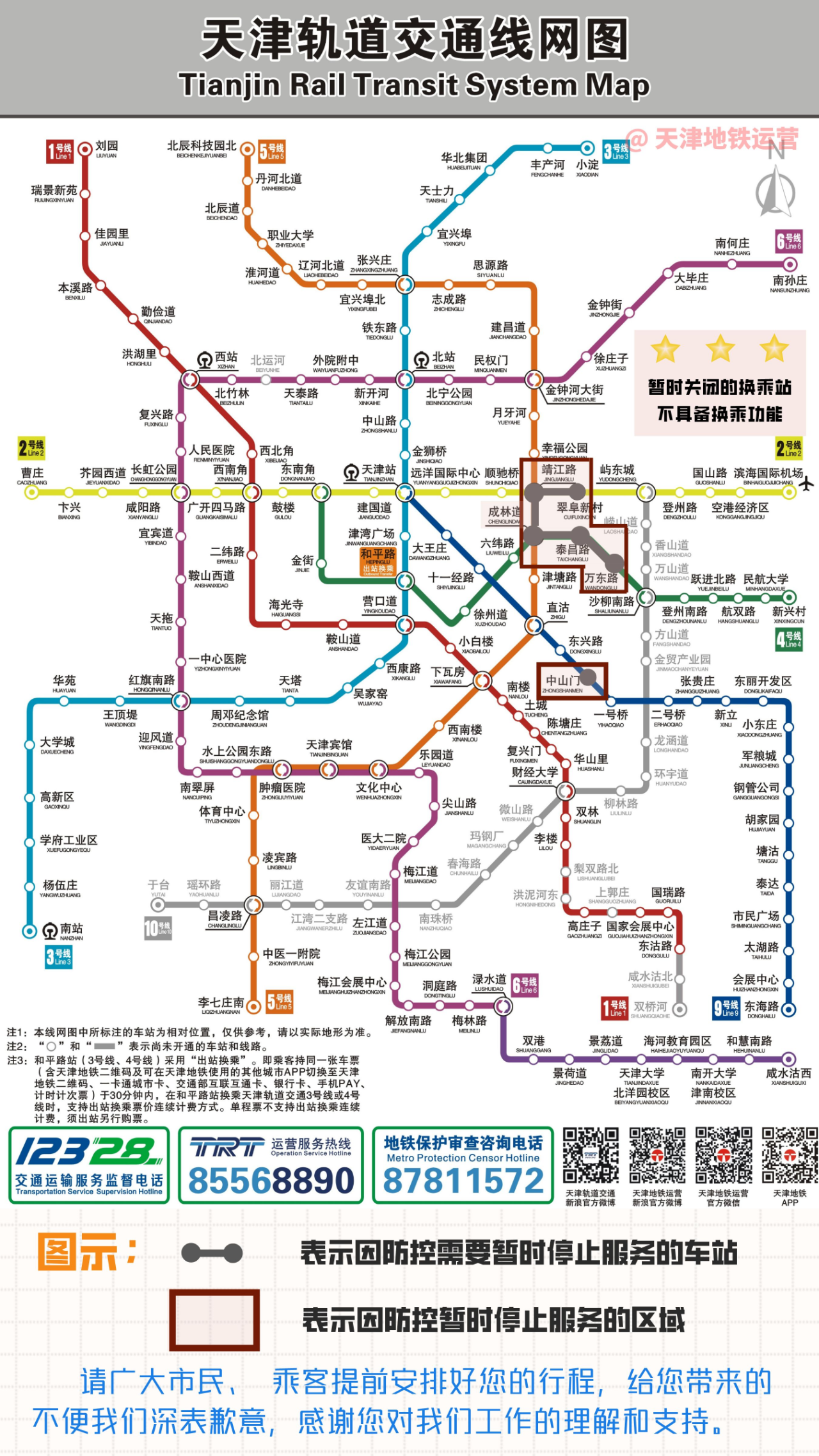 >>>关于天津地铁部分车站临时关闭的公告