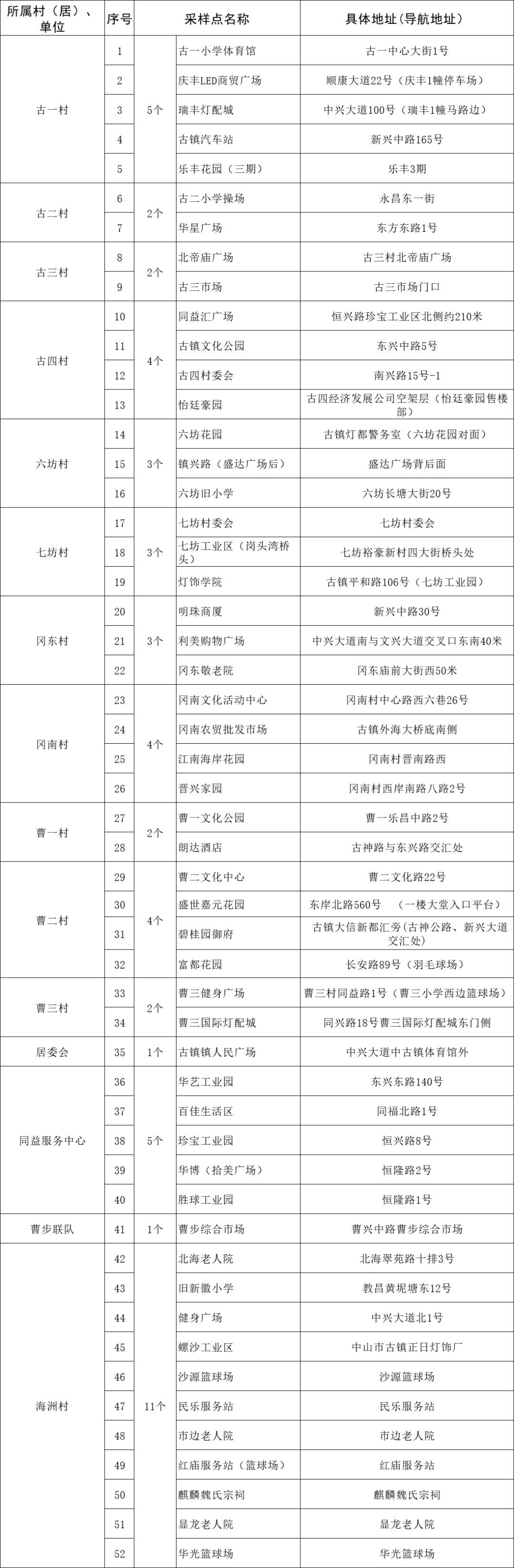 中山古镇区域核酸检测采样点安排(中山市核酸采样的地点)