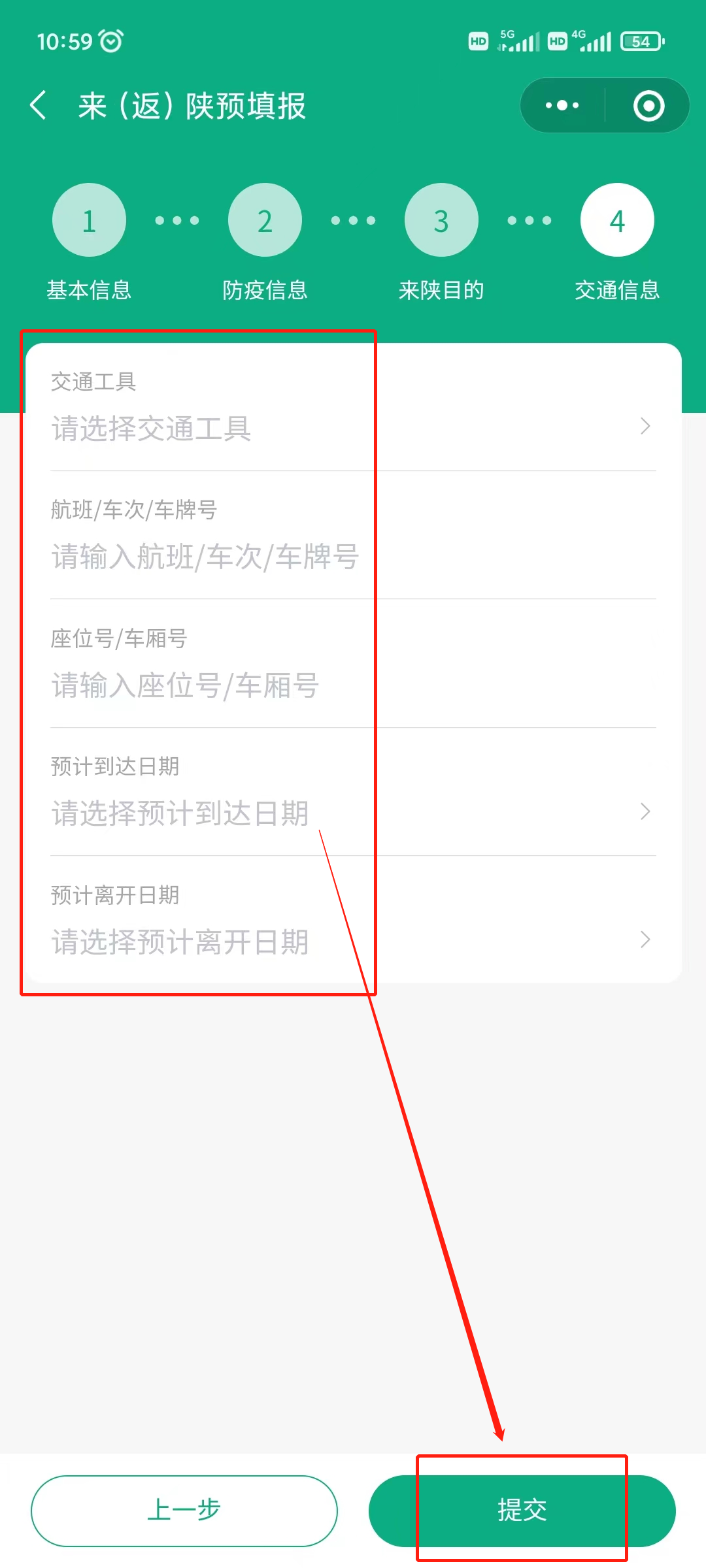 第六步:填写交通信息后,点击提交即可。