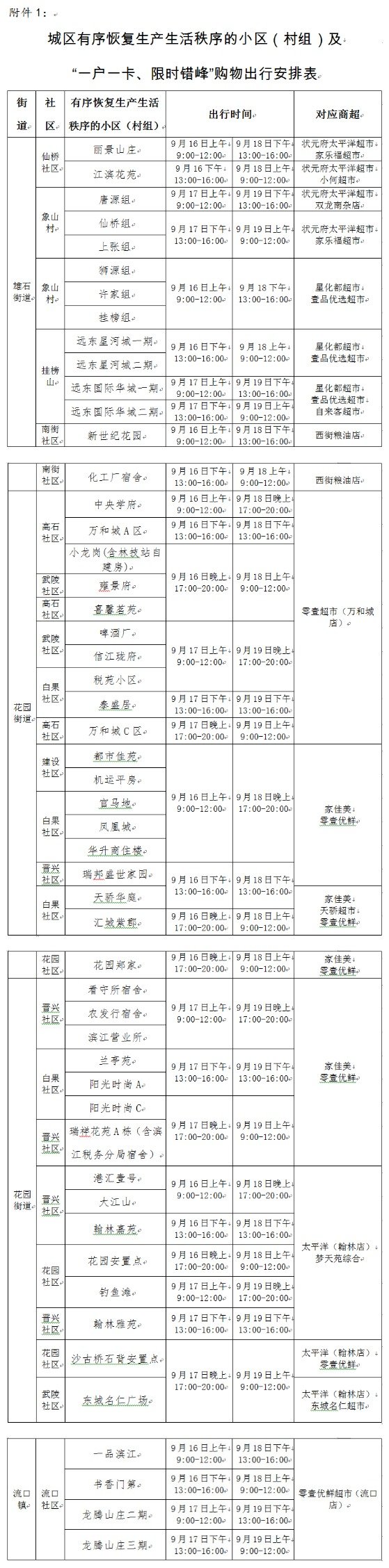 1.城区有序恢复生产生活秩序的小区(村组)及“一户一卡、限时错峰”购物出行安排表