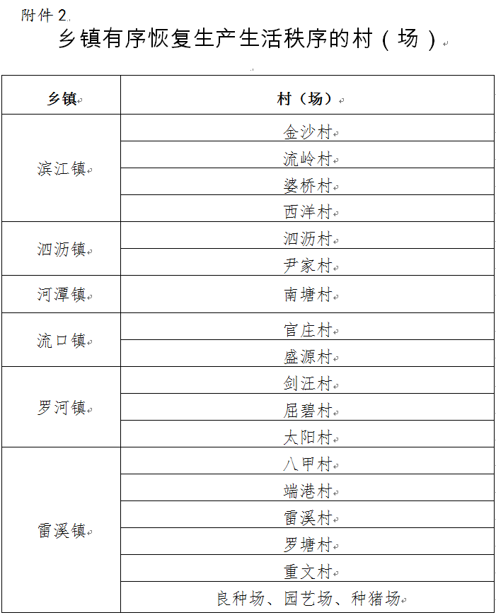 根据《新型冠状病毒肺炎防控方案(第九版)》规定,结合当前疫情防控形势,经综合研判,自2022年9月16日9时起,对贵溪市城区及滨江镇、泗沥镇、河潭镇、流口镇、罗河镇、雷溪镇相关区域有序恢复生产生活秩序(详见附件1、2)。现将有关事项通告如下: