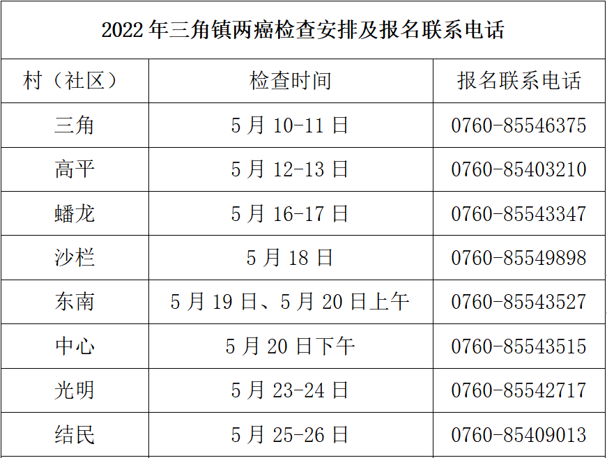 为关爱女性,提高妇女宫颈癌和乳腺癌(以下简称“两癌")早诊早治率,降低“两癌”死亡率,促进妇女健康水平提升,三角镇将于2022年5月10日至5月31日,全面启动2022年度妇女“两癌”免费筛查活动。