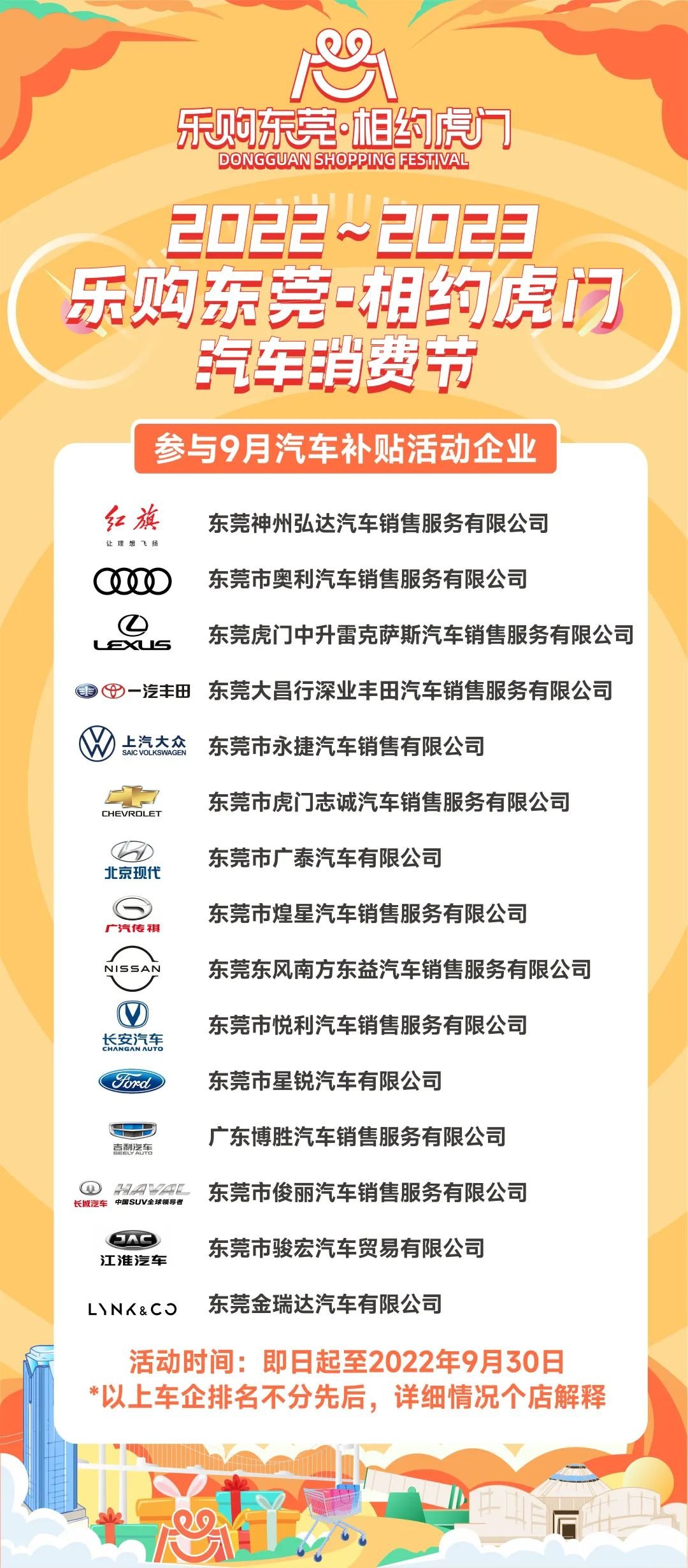 备注:参加2022年9月的乐购虎门汽车团购活动,在指定消费门店支付5000元或以上的定金时方可获得1000元立减,购车前请联系车行人员领取团购立减券。