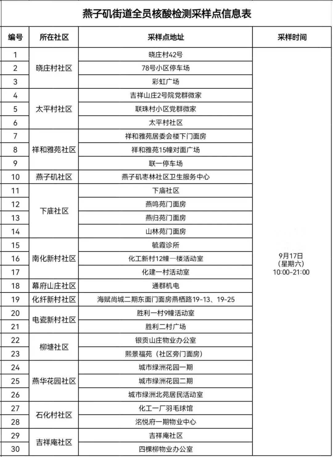 9月17日南京栖霞区规模性核酸检测范围+采样点位