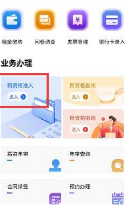 第二步:点击【业务办理】,进入页面后点击【新资格准入】