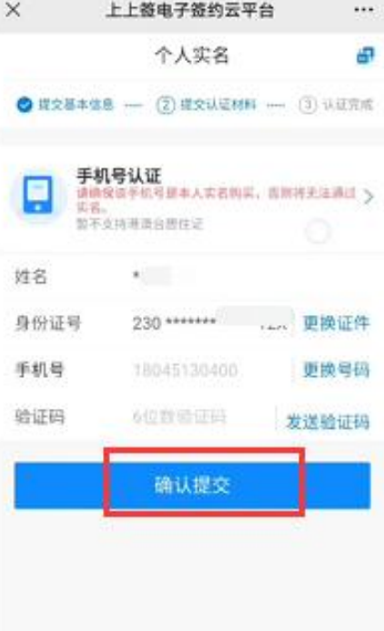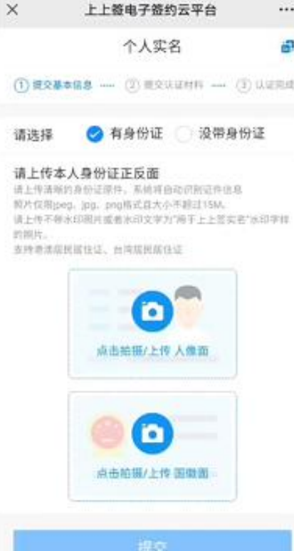 第七步:输入验证码,确认提交,上传身份证正反面提交