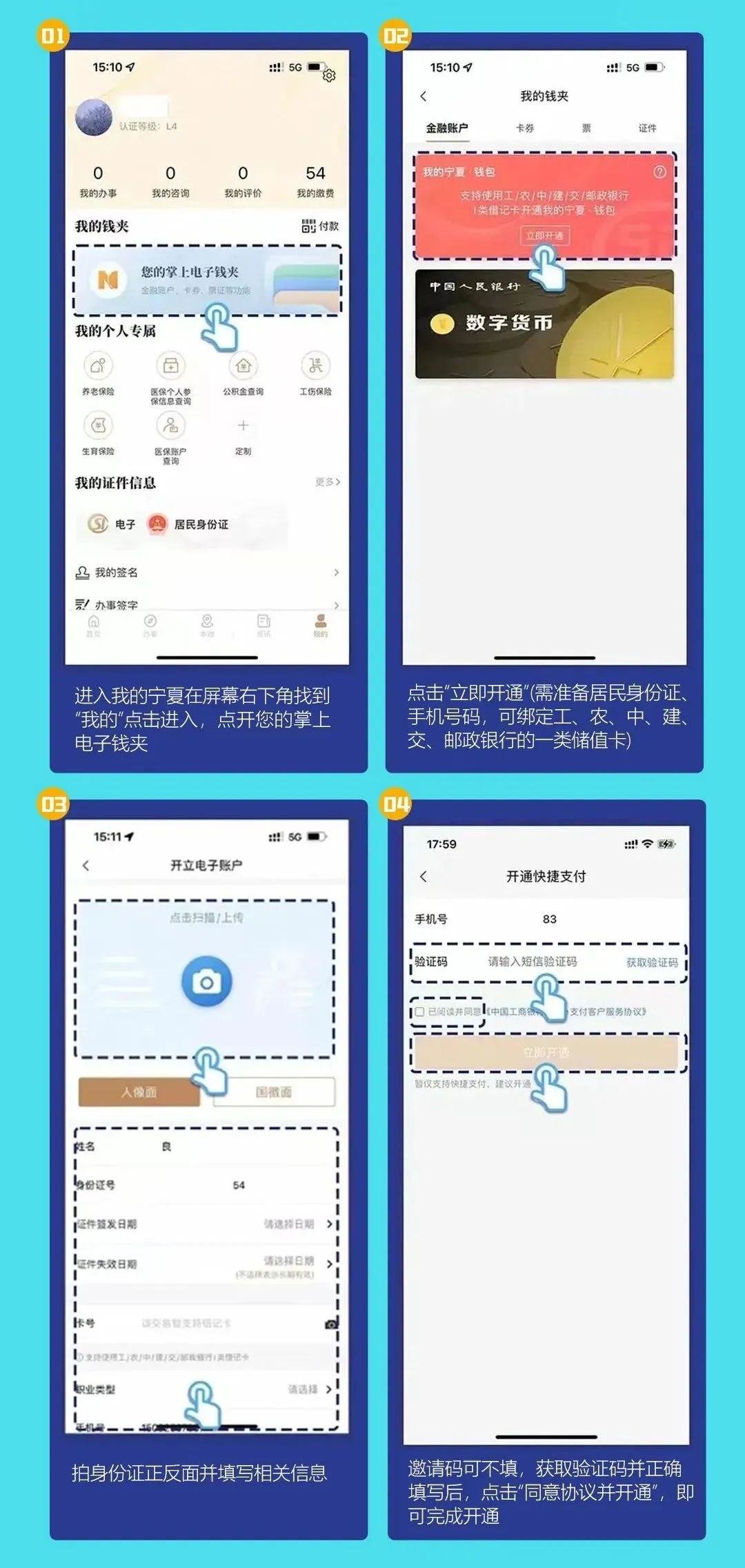 温馨提示:为了便于您及时收到活动补贴,请提前开通我的宁夏钱包功能。钱包开通步骤如下: