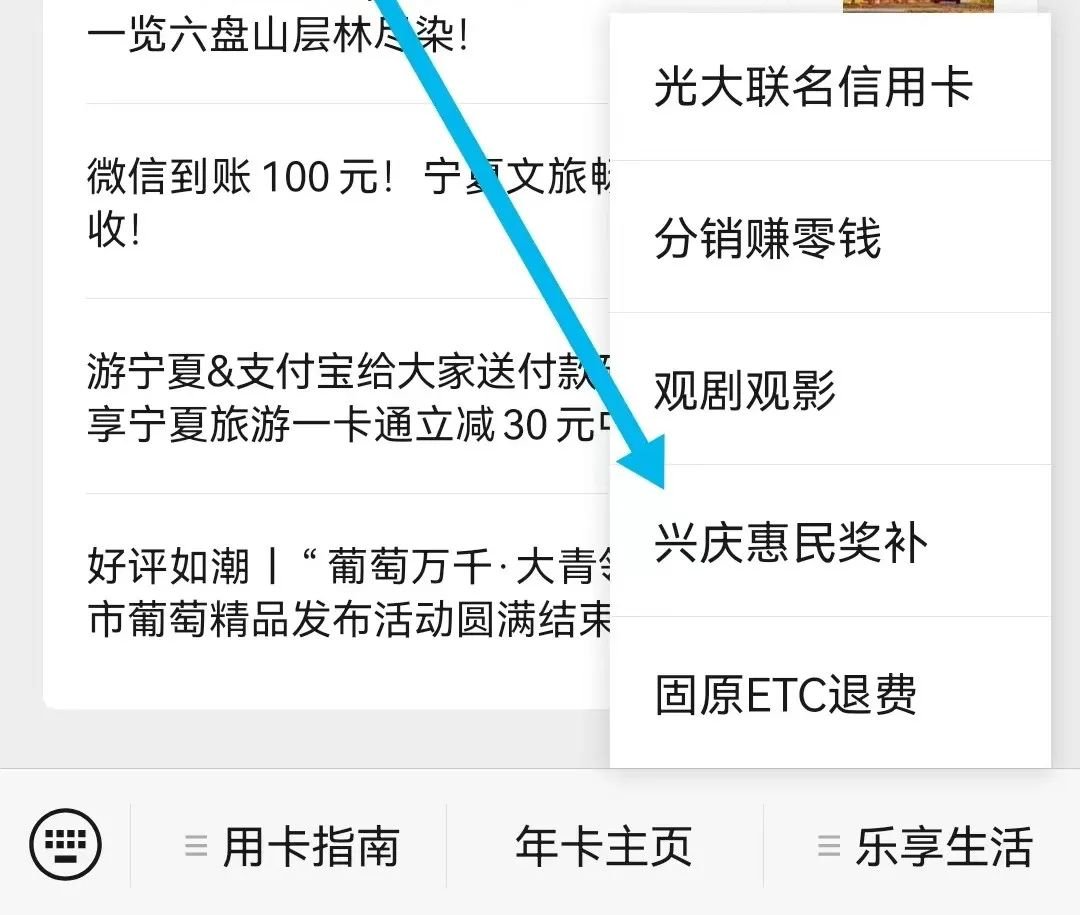 微信搜索“宁夏旅游一卡通”公众号进入,点击“乐享生活”—“兴庆惠民奖补”申报即可。