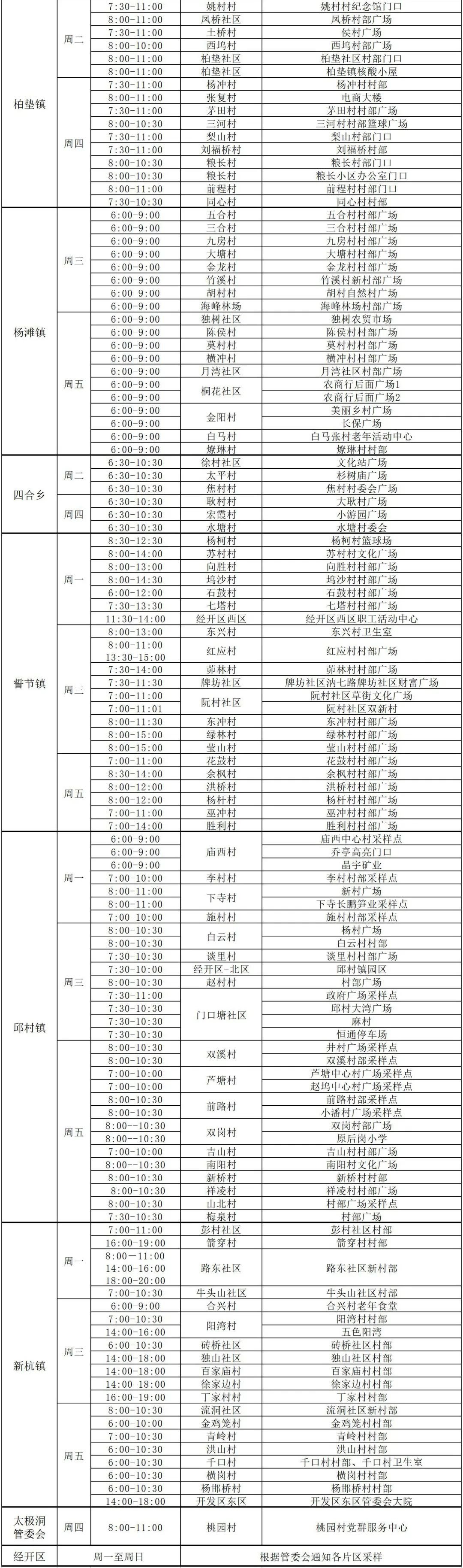 从9月19日开始,全体市民每周须进行一次核酸检测。采样时间和地点安排见附表。免费核酸检测点正常开放。