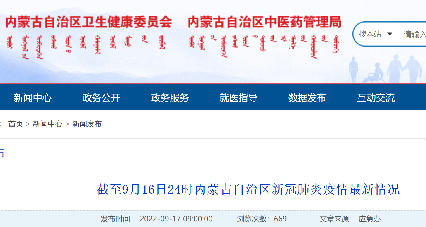 截至9月16日24时内蒙古自治区新冠肺炎疫情最新情况