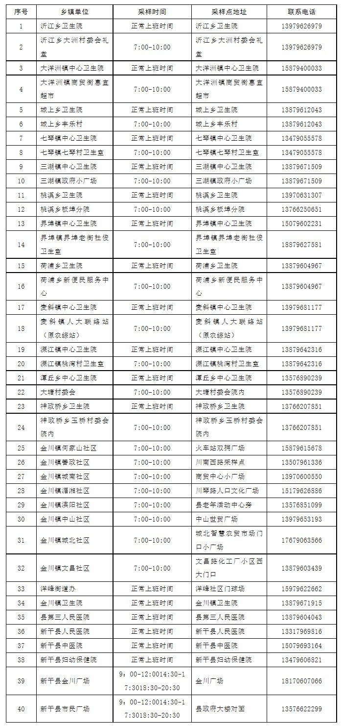 四、全县共设有便民核酸采样点40个(见附表),为居民提供免费核酸检测服务。