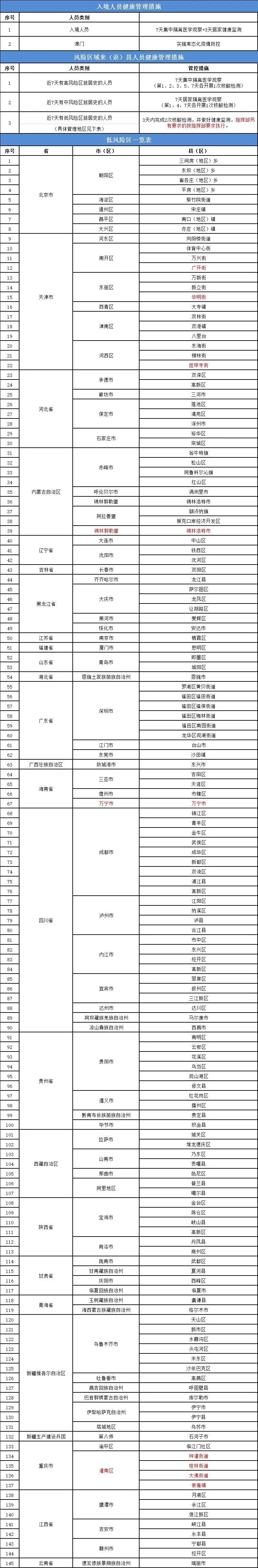 二、来自以下地区的来(返)昌人员严格按照《新型冠状病毒肺炎防控方案(第九版)》要求落实管控措施,指挥部另有要求的按指挥部要求执行。