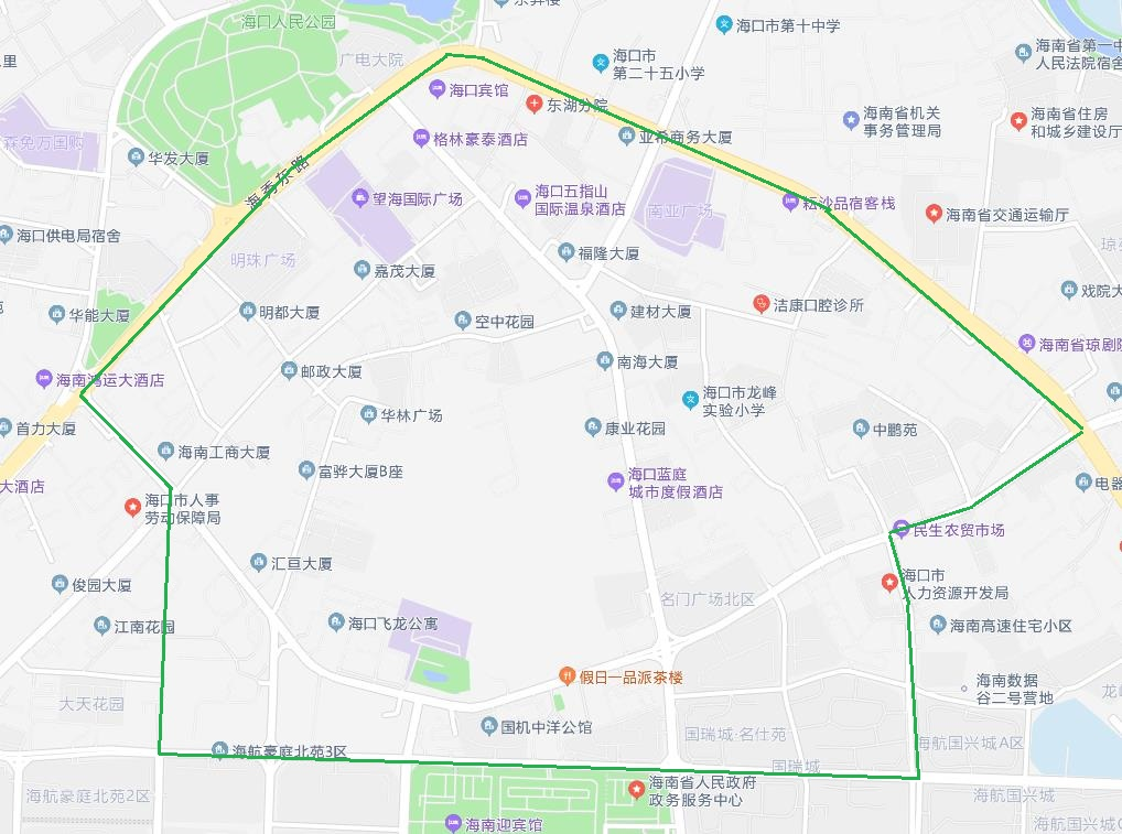 海秀东路、海府路、蓝天路、嘉华路、大英山西二街、大英山西四路、蓝天路合围区域