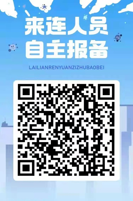 来(返)连人员在来(返)连前应提前下载“辽事通”APP、微信小程序搜索“辽事通大连频道”或扫描“来连人员自主报备”二维码,登录并填报相关信息,完成自主报备。