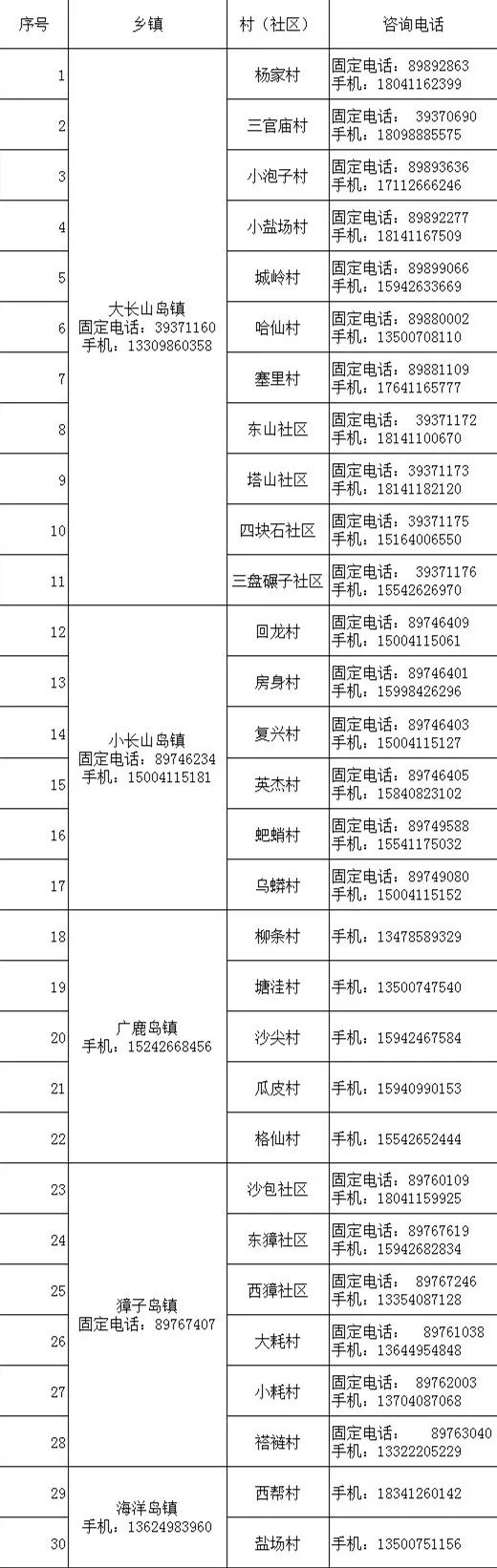 各镇、村(社区)24小时咨询电话: