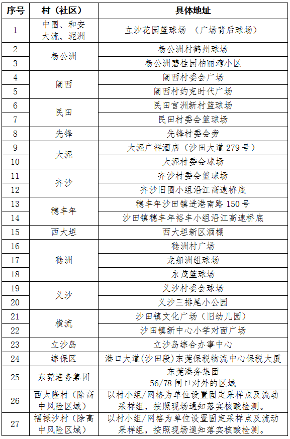 以村(社区)为单位设置固定采样点及流动采样点,各固定采样点详见如下: