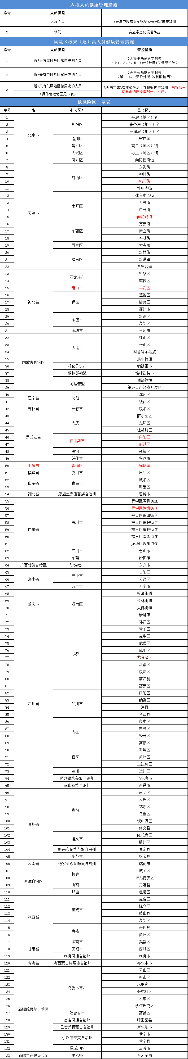 来自以下地区的来(返)昌人员严格按照《新型冠状病毒肺炎防控方案(第九版)》要求落实管控措施,指挥部另有要求的按指挥部要求执行。
