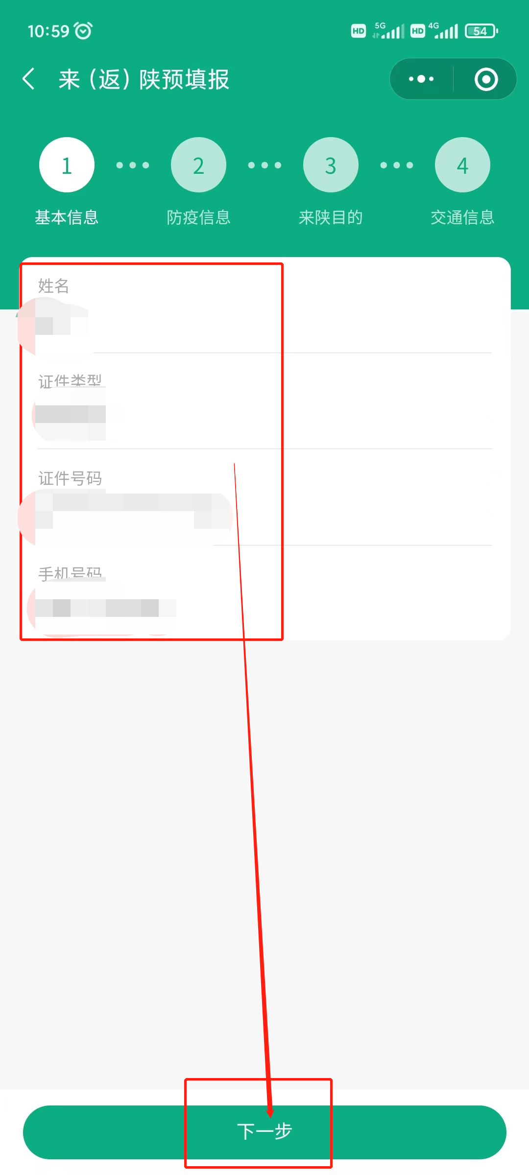 第一步:进入小程序后点击“来(返)陕预填报”;
