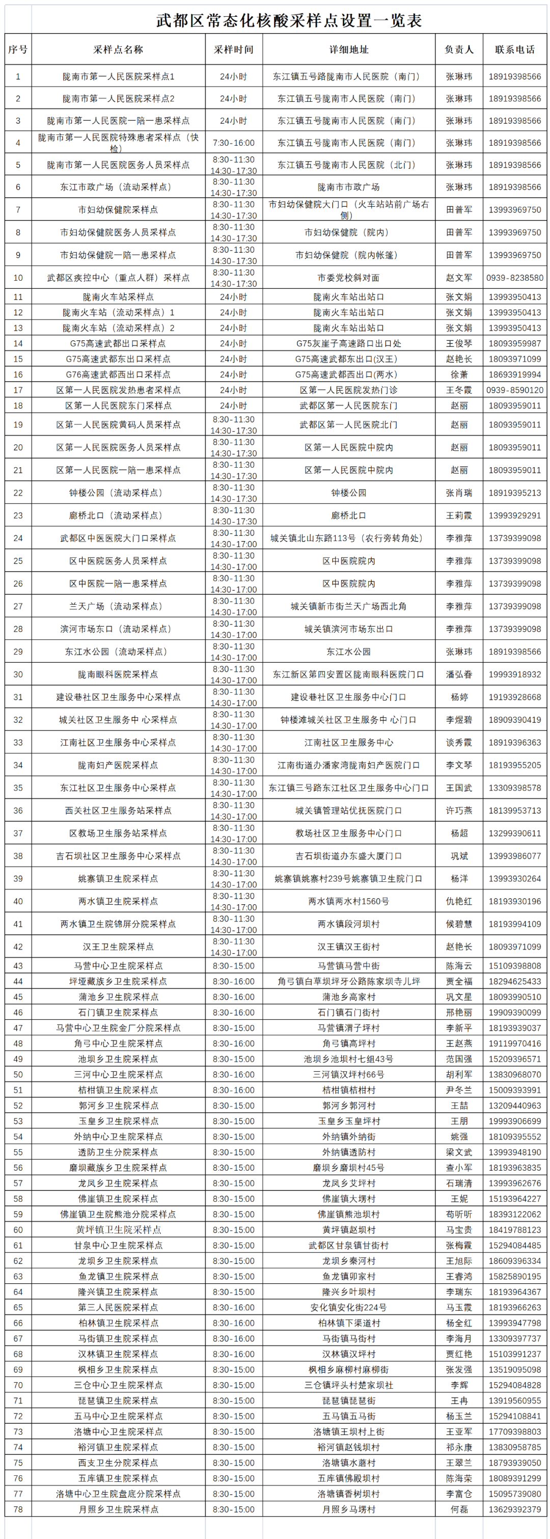 2022陇南市武都区常态化核酸采样点 陇南市武都区核酸检测