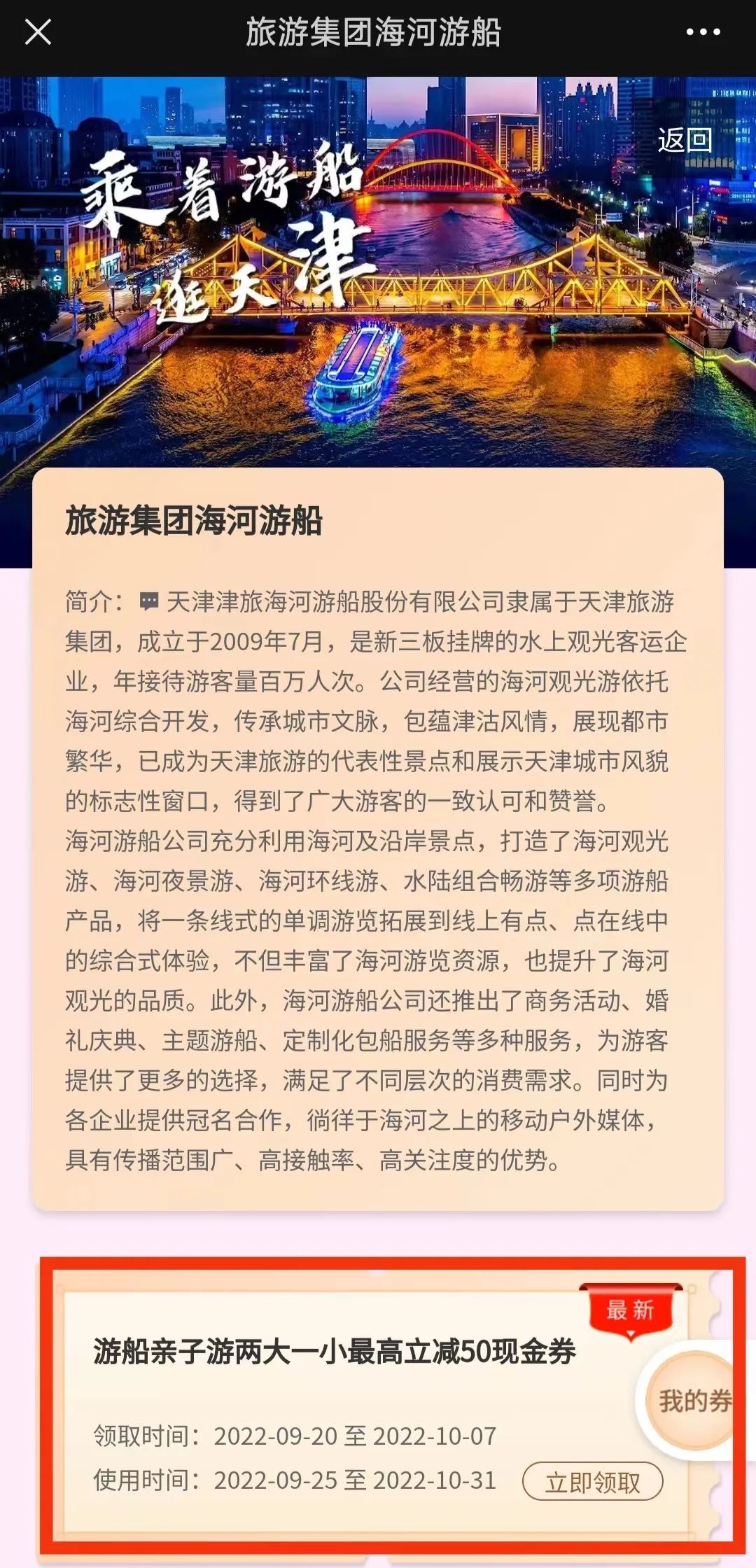 》》》游船亲子游优惠券领取方式