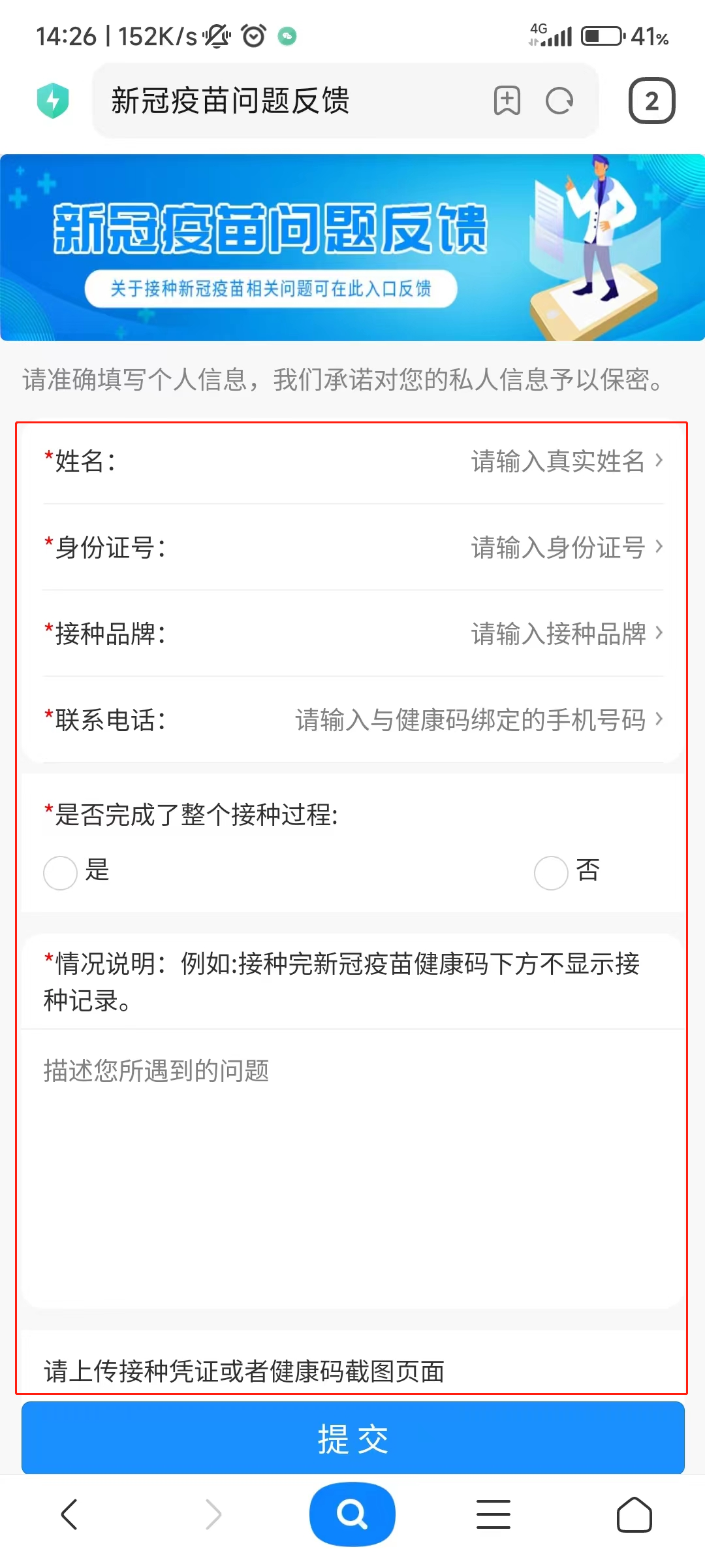 第二步:找到新冠疫苗问题反馈,按界面提示完成操作即可。