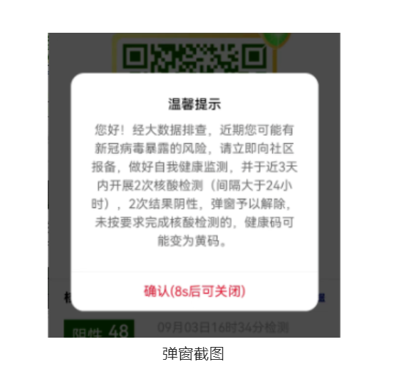 如果湖南省居民健康卡出现弹窗,按照弹窗提示完成核酸检测,结果为阴性,弹窗予以自动解除。